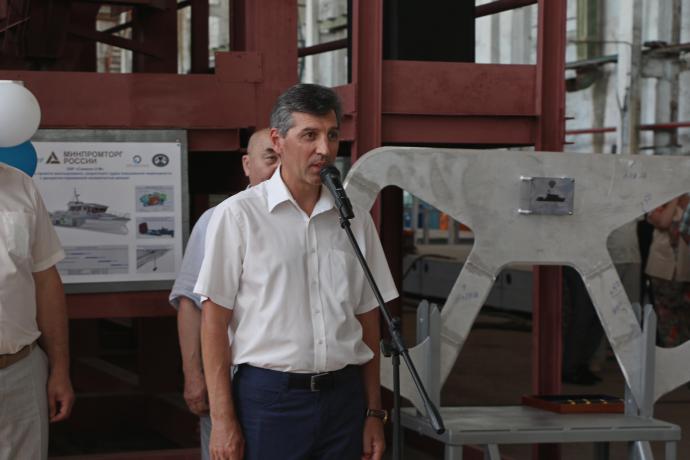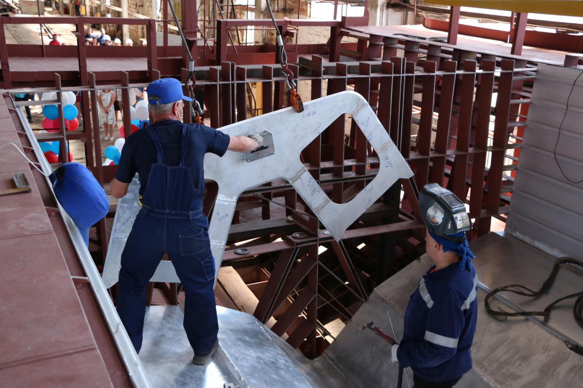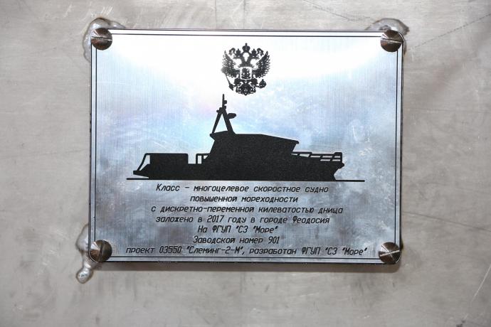 Символическая церемония, посвящённая установке закладной доски на ММС проекта 03550, состоялась 14 июня 2018 года,
