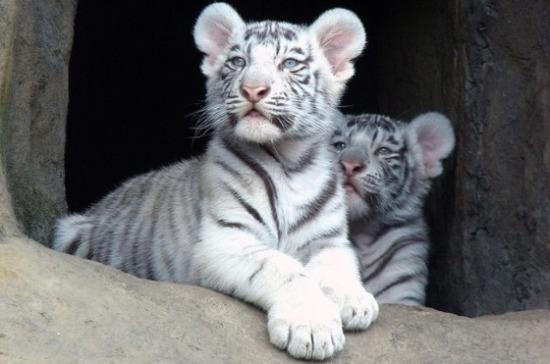 У пары белых бенгальских тигров Хасана и Шахерезады в крымском в сафари-парке «Тайган» родились трое тигрят с редким окрасом.